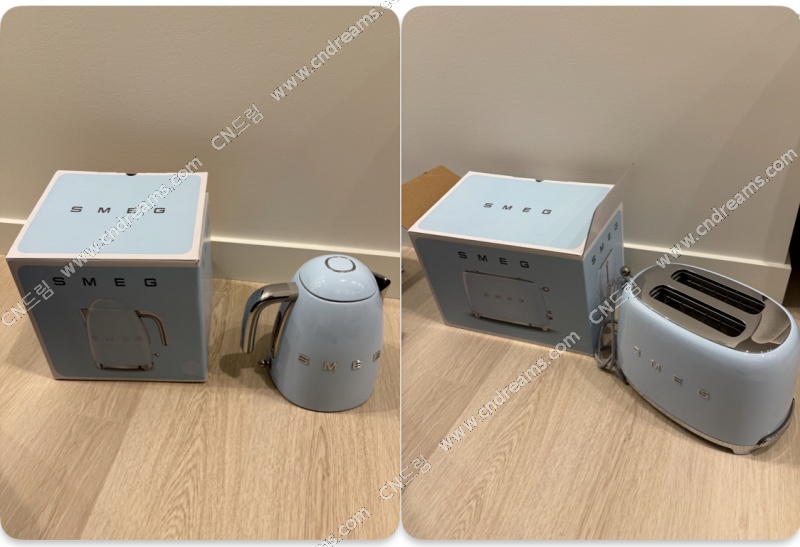 (새제품) Smeg 전기포트, 토스터 파스텔 블루