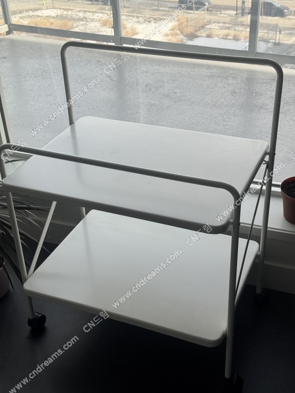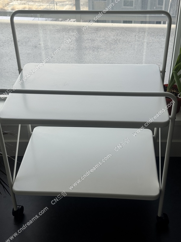 이케아에서 샀던 사이드테이블입니다! 철제여서 가볍고 바퀴 달려 있어 이동하기 편해요. 지금은 단종된 상품입니다