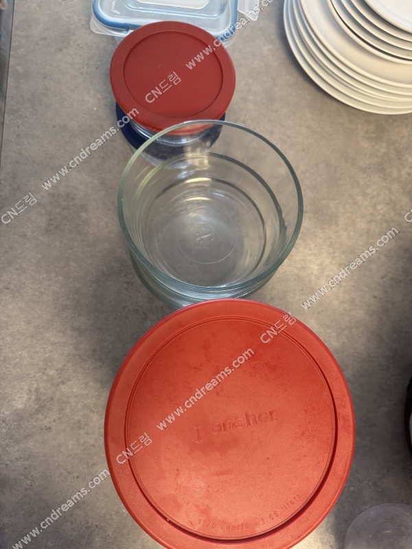 원형 유리반찬통 소, 대 - 각 2달러 , 중 1달러(뚜껑 없음)