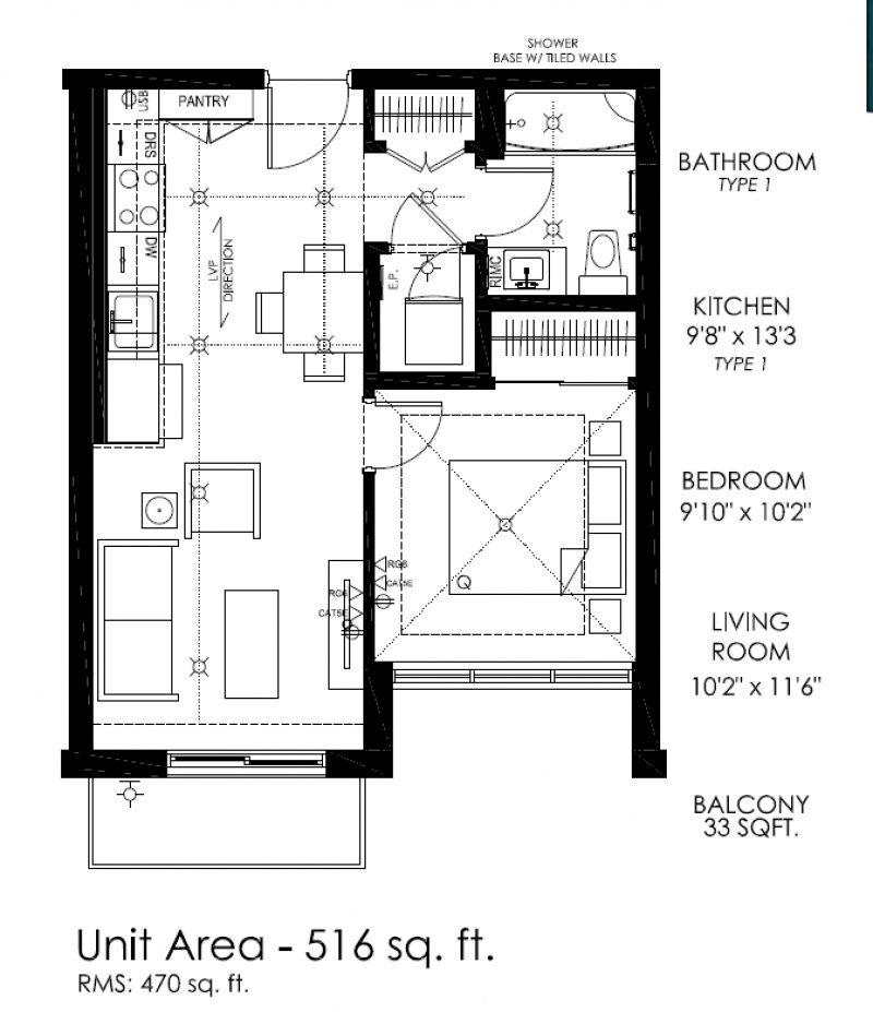 1 Bed 1 Bath 이며 University district에 위치한 새 콘도입니다.